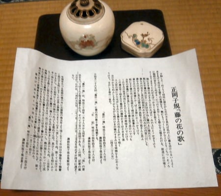 <2j: 正岡子規の話題になった折に、この「藤の花の歌」等の資料を下さり、子規の歌をご教示くださった.>