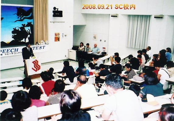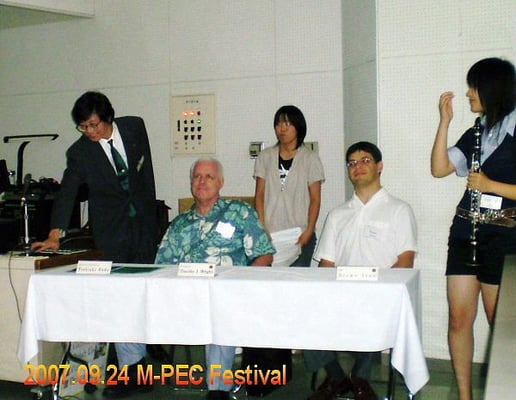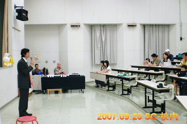 The executive director of Foundation of LL Education Center at that time was Mr. Mitsuo Miyata. He is still now, as of 2012, one of Yoshy’s best teachers. You can see Mr. Miyata at the rostrum and Prof. Wright at the left edge.