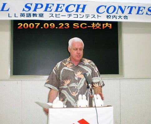 Tim sensei came to LL Shihoya Arai School in 2006 as a judge of Speech Contest Interclass. Furthermore, he has visited here not only at LL Speech Contest, but also the Festival of Myoko Powerful English Club (M-PEC) as a special advisor; in case of his absence, he has been sending us his warmhearted message every time for both events.