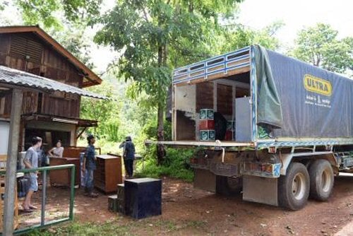 祈ってくださってありがとうございます。「引っ越しの日」の朝は曇っていましたが雨は降っていませんでした。ソーさん(ディーさんの夫)と、ペイさん(チさんとパイさんの息子)と、数人の村の男たち積み込み作業を手伝ってくれました。トラックの到着と積み込み作業が予想以上に時間がかかり、真夜中に搬送準備が完了しました。トラック運転手が言うには、出発を早朝4時まで待って、正午までにはプエン・クレンに到着予定だとのことでした。しかし、そんなに早く着くわけがないことを知っていました。-予定は未定なのです。-そこで、2時まで待って出発するように決めました。
