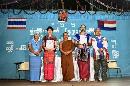 On January 18th we had our big test. It was the end of the Karen reading and writing school year and all the students and teachers from nine different villages (on both sides of the border) descended on our town. The event lasted four days with meetings, singing, dancing, football (soccer) matches and lots of visiting. There were hundreds of people there and we met many of them. Wendy and I both passed the test and Wendy got the highest score of over one hundred students from the nine villages. They also made a special presentation of giving me my diploma even though I didn't place in the top three in the class.
