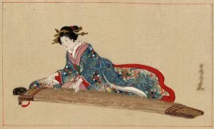 予定通り、「琴の演奏」がありました。正確には「筝(そう)」ですが、「琴」は、sushi, tempura, judo、ukiyo-e のように、世界に知れ渡っていますので、the performance of the kotoにしました。第一、目の前にあるのですからplaying or performing …とくれば楽器だということは一目瞭然: quite obviousですね。Sloveniaの高校生の顔を見ていたら、全員が始めてみたような表情でしたので、「13本の弦の、横向きの日本的なハープ」: the 13 stringed horizontal Japanese harp と付け加えました。
