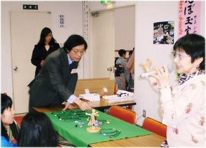 その男の子の隣におられたのが、濁川明男教育長: the superintendent of the Board of Educationで、私に、「遠藤さん、和太鼓は欅で出来ていて、豚の皮が張ってある、と通訳してくれませんか?」と言われました。即、 “The dram is made of Keyaki tree and covered with the skin of a pig.” と言ってから、内心どぎまぎしました。実は「欅」を説明しようとしましたが、日本特有の木をどう説明しようか一瞬困って、「窓から見えるよ!」: “Look outside the window!”といった途端、外はもう真っ暗でした。仕方ないので、「欅は樫や黄楊(つげ)の木のように固い木です。」: “Keyaki tree is very hard like oak or box trees.”と言わざるを得ませんでした。平成21年は、もっと普段から、日本的なモノ:Things Japaneseを徹底的に勉強しなくては、と良い刺激になりました。 (後記:欅:Zelkova [zélkəvə] )