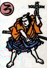 絵札では、侍:warriorが証拠の「呪いの藁人形:a curse straw doll」を見ろと、見得(みえ)を切っています。