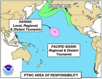 1946年、アリューシャン地震:Aleutian [əlúːʃən] Earthquakeでハワイ:Hawaiiに津波の大被害があった際に、日系移民が "tsunami" という語を用いたことから、ハワイでこの語が使われるようになり、被害を受けて設置された太平洋津波警報センターの名称も 1949年には Pacific Tsunami Warning Center:略して、PTWC とされたことから、アメリカ合衆国ではこの語が広く用いられるようになり、その後、1968年にアメリカの海洋学者ヴァン・ドーン(Van Dorn)が学術用語として使うことを提案して、国際語になりました。