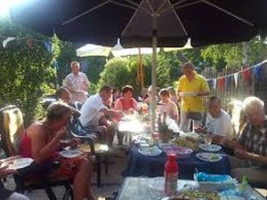 「あそこで何をしてるの?」 - 「ガレージ・セールよ。」- 「なに、それ?」- 「バザーよ。」- 「バザーって、なに?」 - 「あんた、知らないの?バザーって、フリーマーケット!」 - 「あぁ、フリーマーケットかぁ!だれでもなんでも売っていいんだね?」- 「駄目よ!許可がいるわ!」 - 「えぇ?じゃあ、フリーじゃないじゃないの?」- 「うーん…」