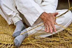 敷物の「筵(むしろ)」は、straw mat、つまり「藁のマット」です。K先生は、「単語だけの訳しか渡さなかった私も悪かったが、遠藤、初めての単語は、日頃辞書を引いて、例文をノートに書けよ。」で、○にして下さいませんでした。熱心な先生でした。K先生のお陰で、LLシホヤ新井教室の生徒には、混乱しそうな単語は、必ず、辞書の例文で確認させています。