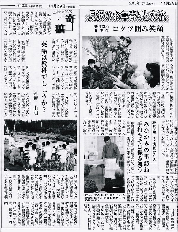 2013.11.29(金)、上越タイムスに寄稿:Yoshy’s Contribution to Joetsu Times on November 29th (Fri), 2013