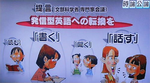 奇しくも、10月8日(水)のNHK:「時論公論」で、文科省専門家会議の提言が分かりやすく解説されました。「今すぐ発信型英語への転換を!」がテーマでした。LLシホヤ新井教室が40年間地道に取り組んできたテーマが、やっと「日本人に」認められ始めたのです。