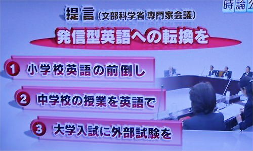 「中学校の授業を英語で」と提言していますね。NHK解説委員が裁判の判決文のように、静かに述べました。「英語科の教師で英検準1級の有資格者は、3割に満たないのです。果たして6年後の東京オリンピックの年までに間に合うのでしょうか?」と。