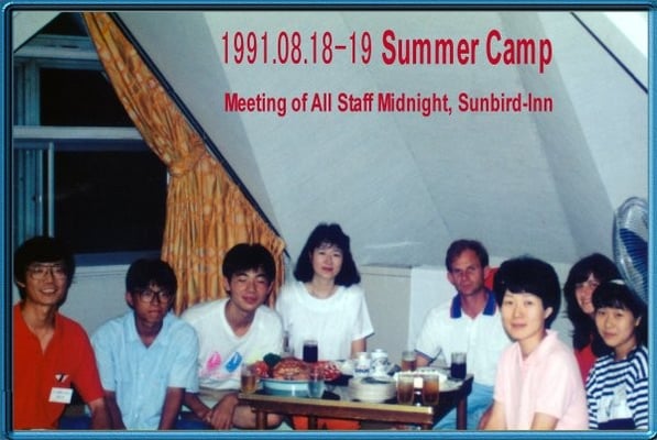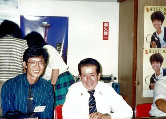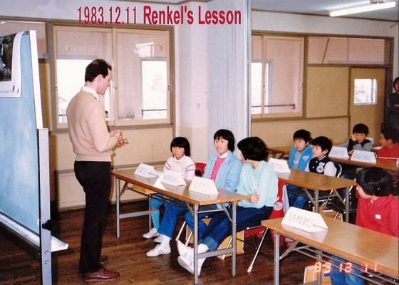 (1-c) J. B. ハリス先生 (旺文社顧問・英会話)、高本捨三郎先生 (明治学院大・音声学)、田中誠之助先生 (慶応義塾大・児童心理)…超一流の指導者から指導技術を直に教わることができました。年1回、講師資格更新試験があり、レベルは現在の英検準1級でした。試験の一部に、「高本先生の前でのレッスン演示」があって、緊張のあまり泣き出す女性講師もいました。今なお向学心を保てるのは、当時、目白本部に漂っていた「講師の力量があってこそ!」の空気のお陰です。