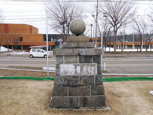 You can find “the stone-monument of winning the best health in Japan” on the left of the first picture.